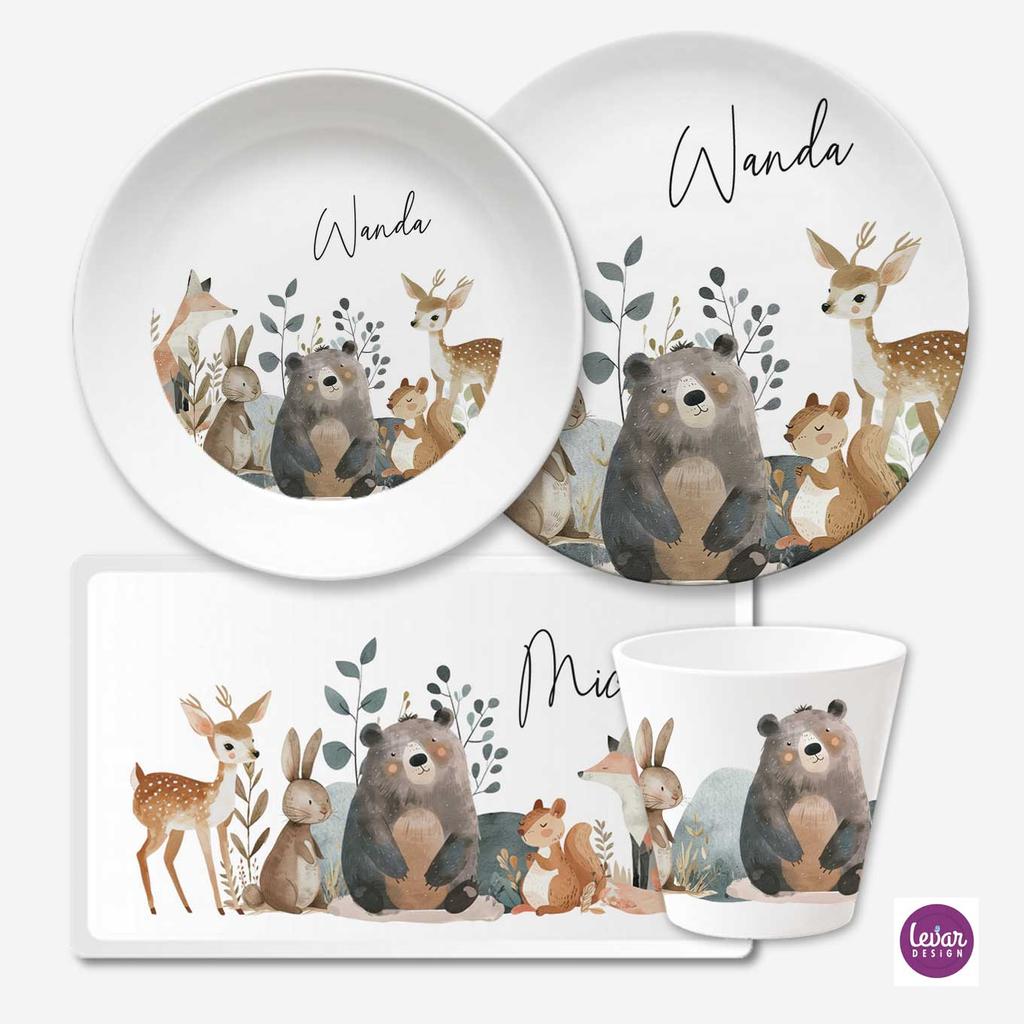 Kindergeschirr mit Namen personalisiert, Waldtiere