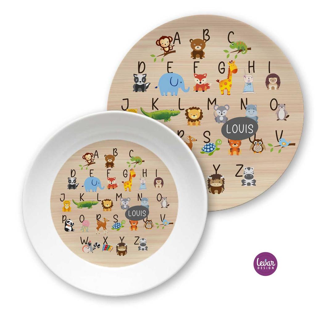 Kinderteller mit Namen aus Melamin, BPA frei, für die Spülmaschine