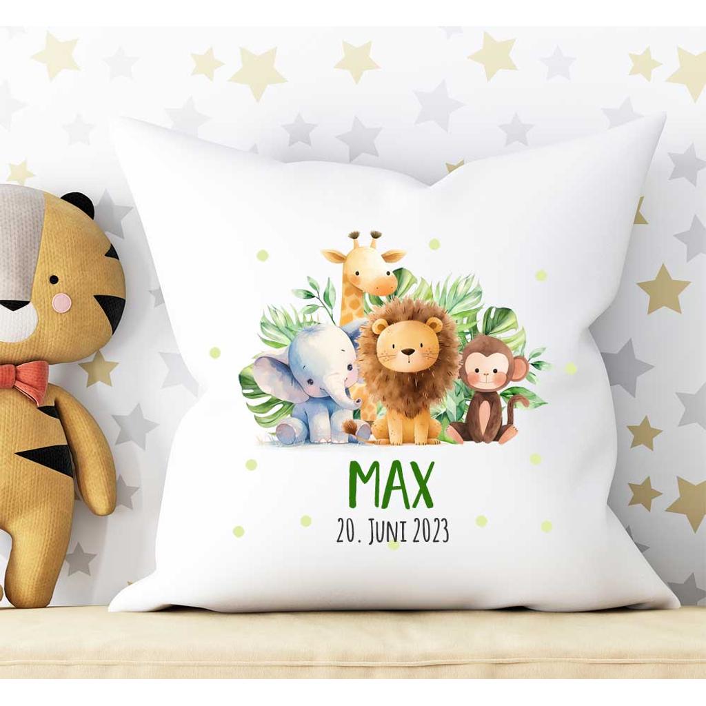 Liebevoll gestaltete Kissen. Personalisiert mit dem Namen und den Geburtsdaten Ihres Kindes.