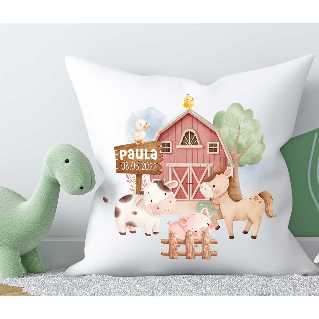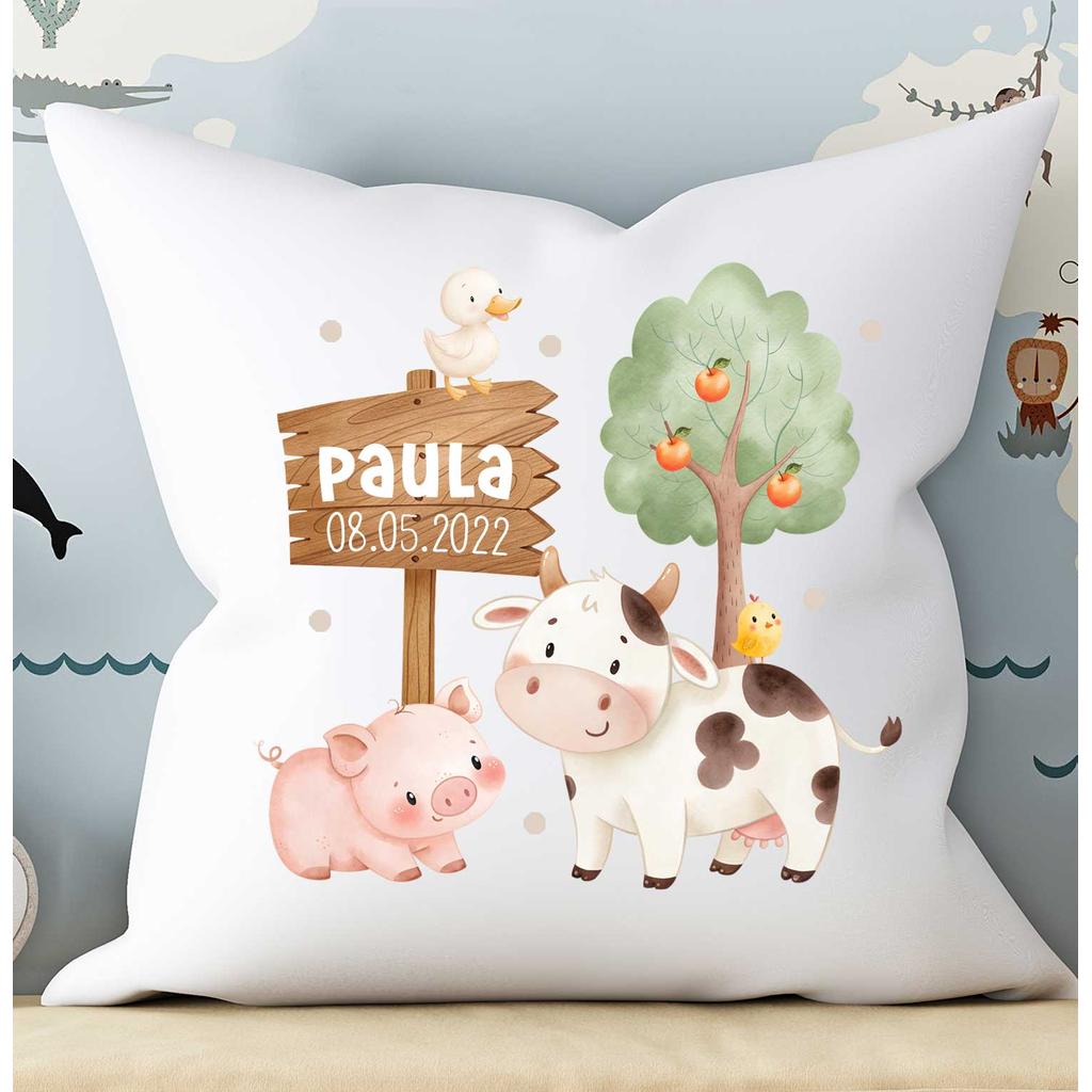 Liebevoll gestaltete Kissen. Personalisiert mit dem Namen und den Geburtsdaten Ihres Kindes.