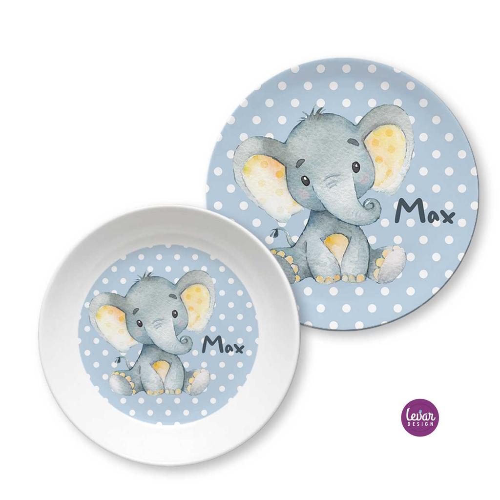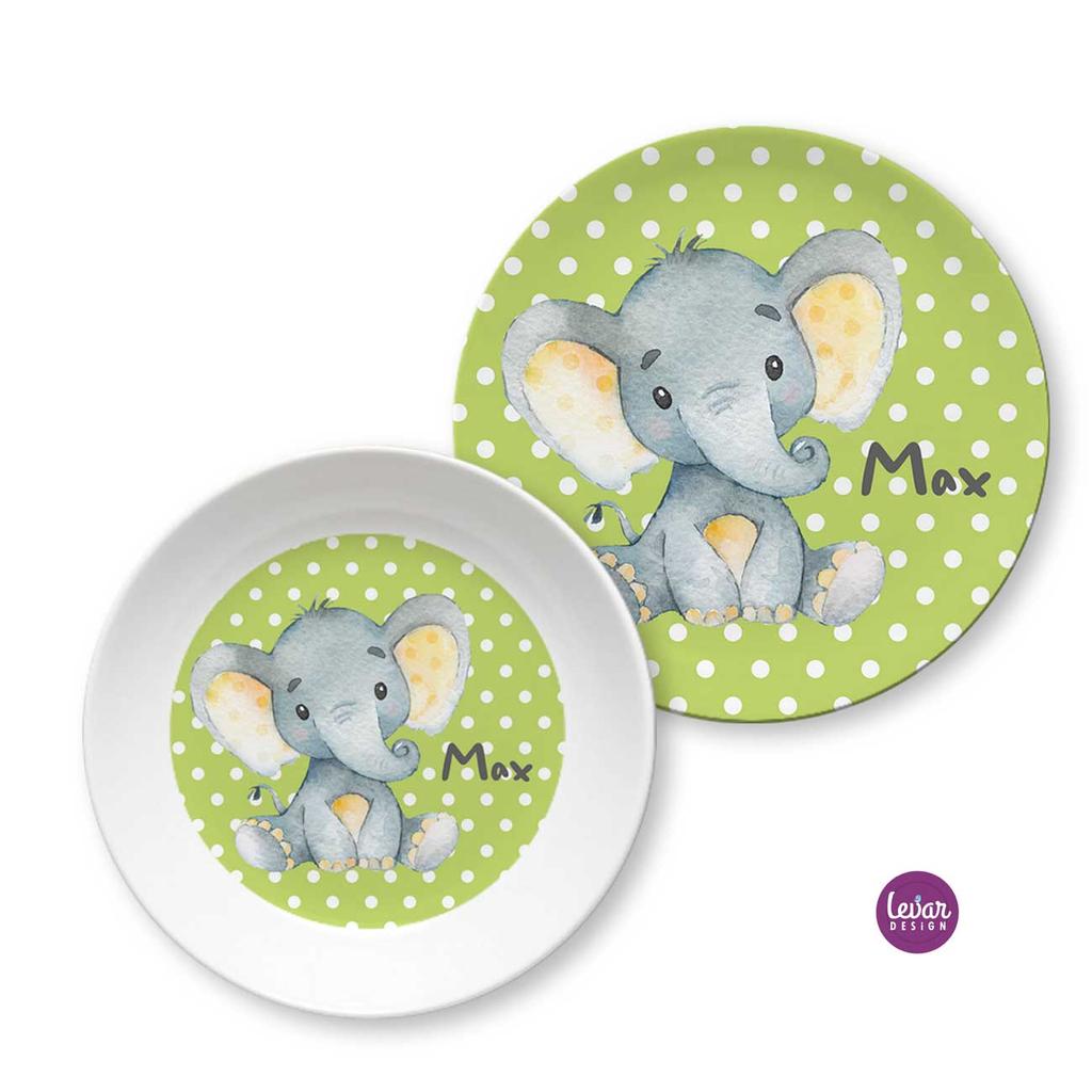 Zauberhaftes, 2 teiliges personalisierbares Kindergeschirr aus Melamin für Kinder.