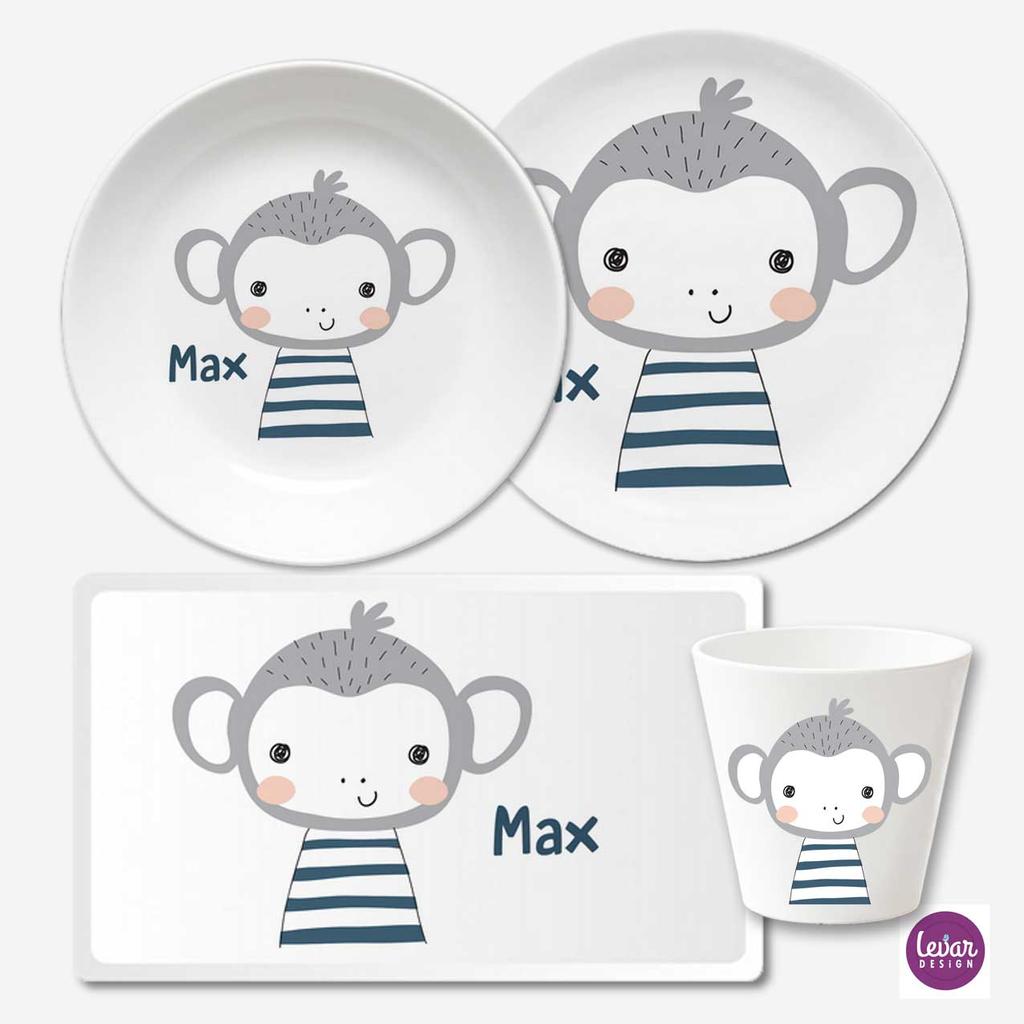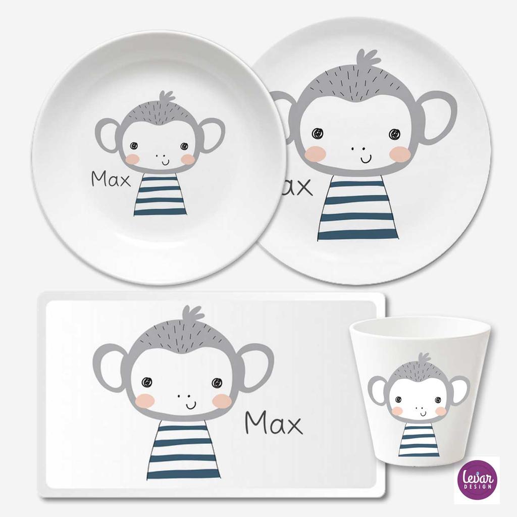 Kindergeschirr Set mit Namen personalisiert, Affe