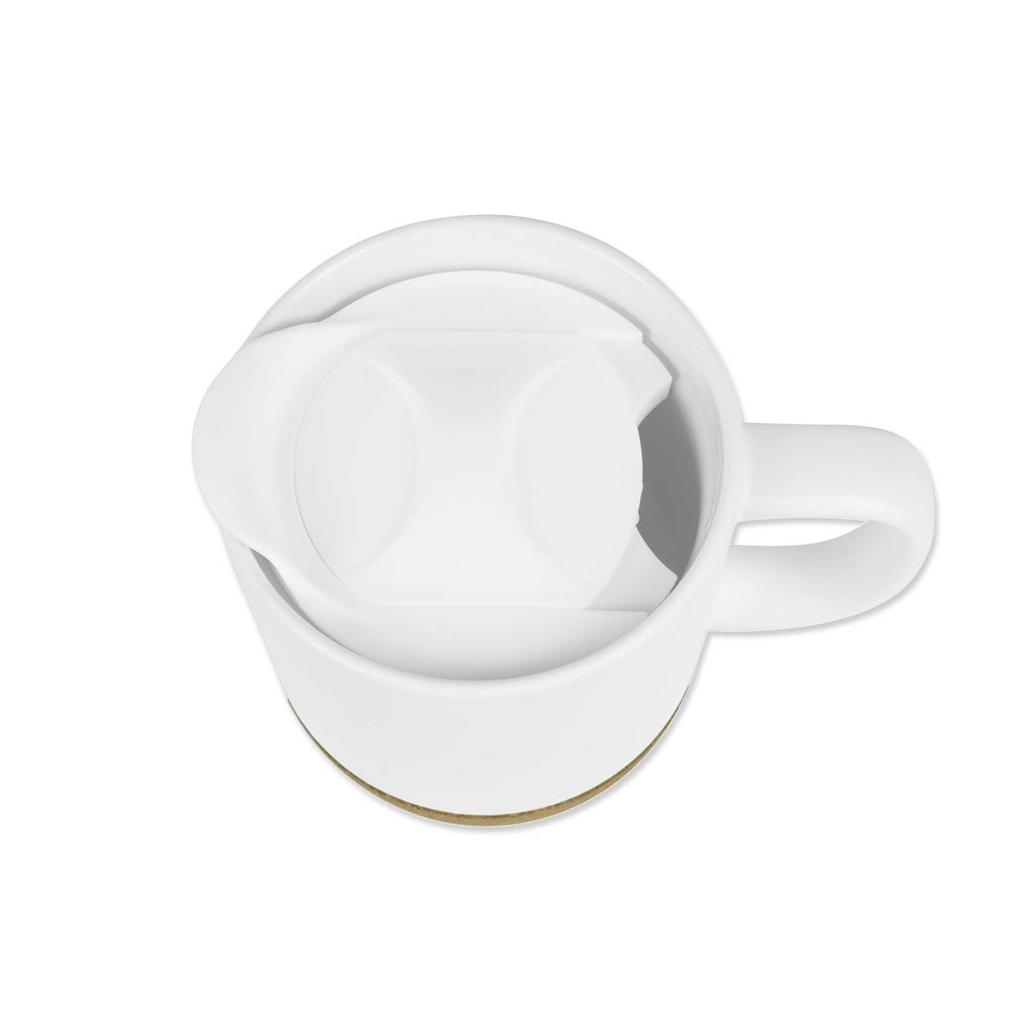 Der praktische, weiße Kunststoffdeckel sorgt dafür, dass nichts in das Getränk fällt.