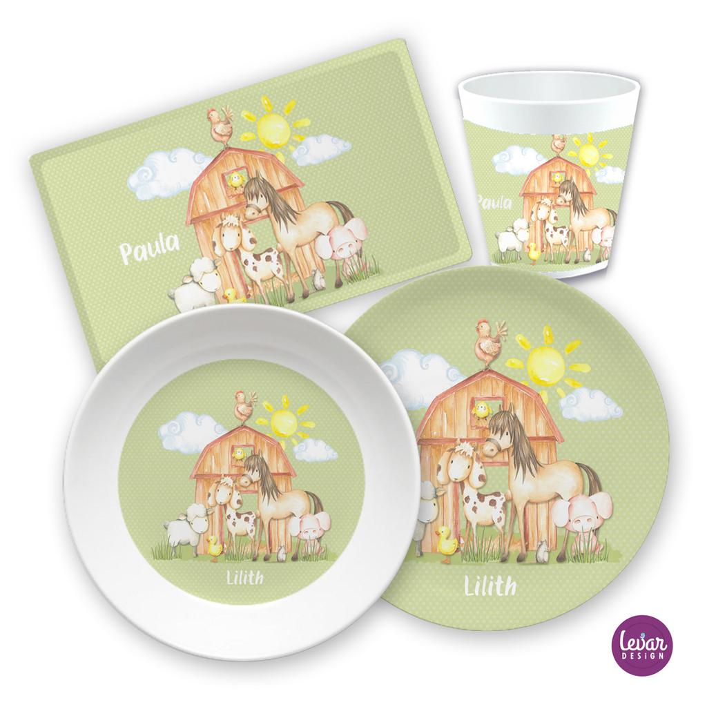 Kindergeschirr Set mit Namen personalisiert, Bauernhof- 4 teilig