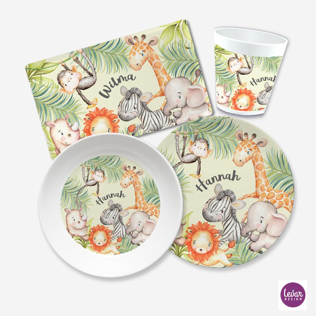 Kinder Geschirr Set mit Namen ❤ Dschungeltiere