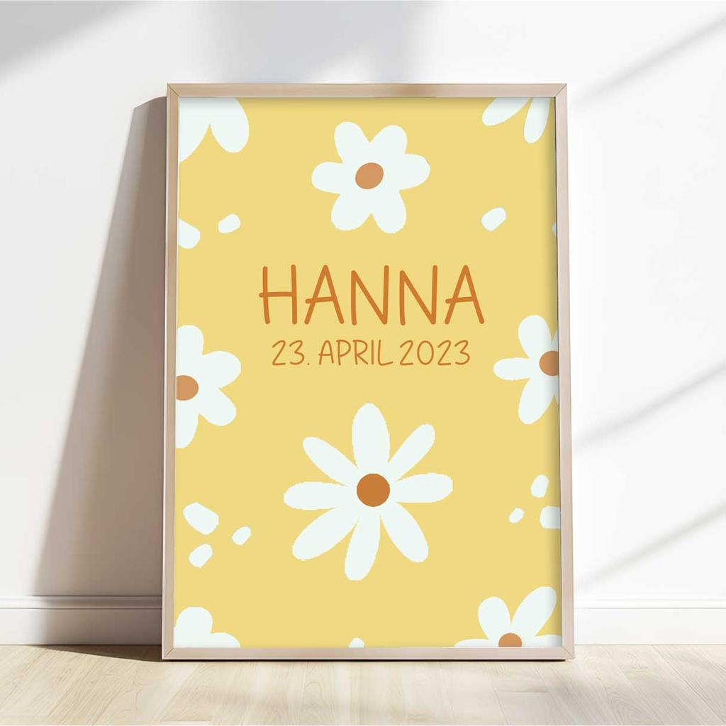 Zauberhaftes Namensbild mit den Daten Ihres Kindes als schöne Geschenkidee zur Geburt und Taufe.