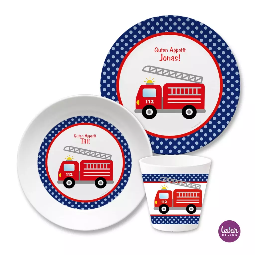 Kinder Geschirr Set mit Namen ❤ Feuerwehr