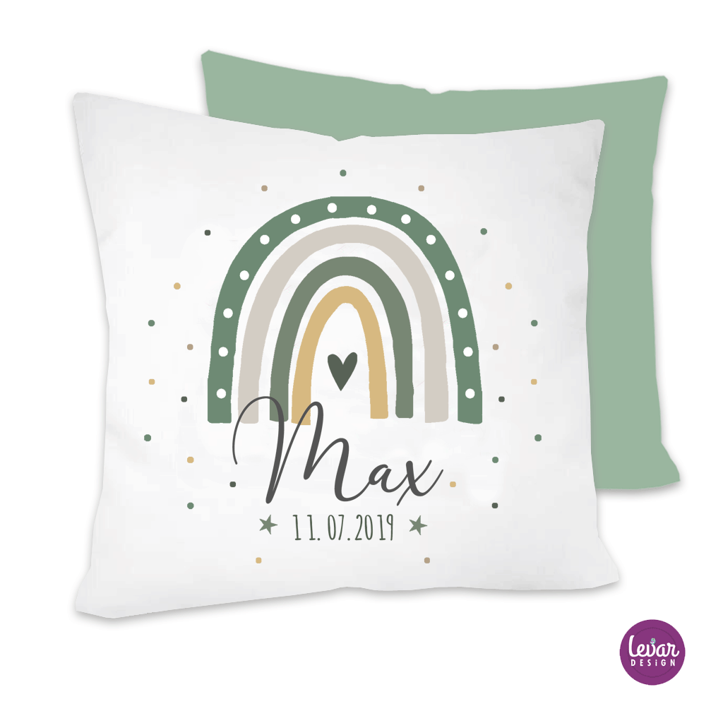 Liebevoll gestaltete Kissen. Personalisiert mit dem Namen und den Geburtsdaten Ihres Kindes.
