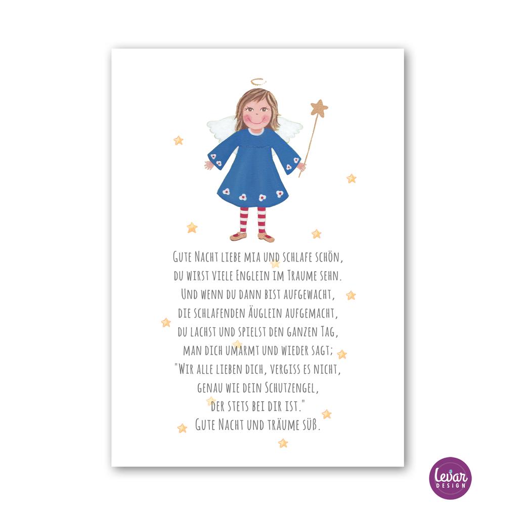 Zauberhaftes Schutzengelbild mit dem Namen Ihres Kindes und einem Gedicht. Eine schöne Geschenkidee zur Geburt und Taufe.