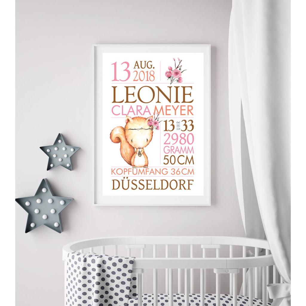 Zauberhaftes Namensbild mit den Daten Ihres Kindes als schöne Geschenkidee zur Geburt und Taufe.