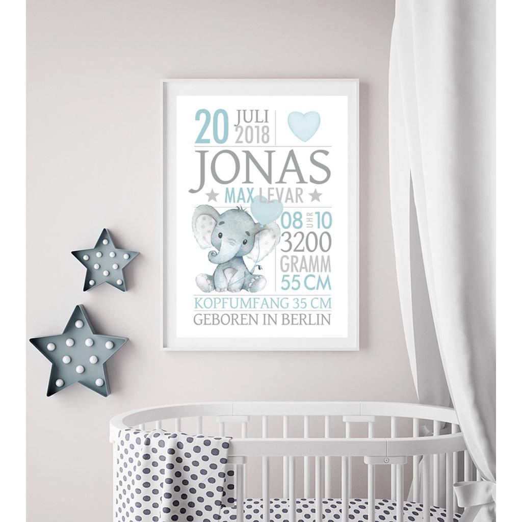 Personalisiertes Geschenk Baby zur Geburt – Taufgeschenk – Elefant | Baby Geschenke zur Geburt