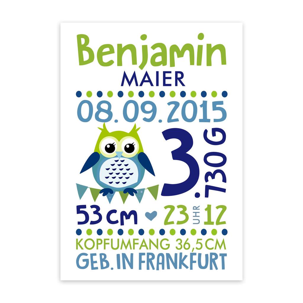 Namensbild, Geburtsanzeige Eule