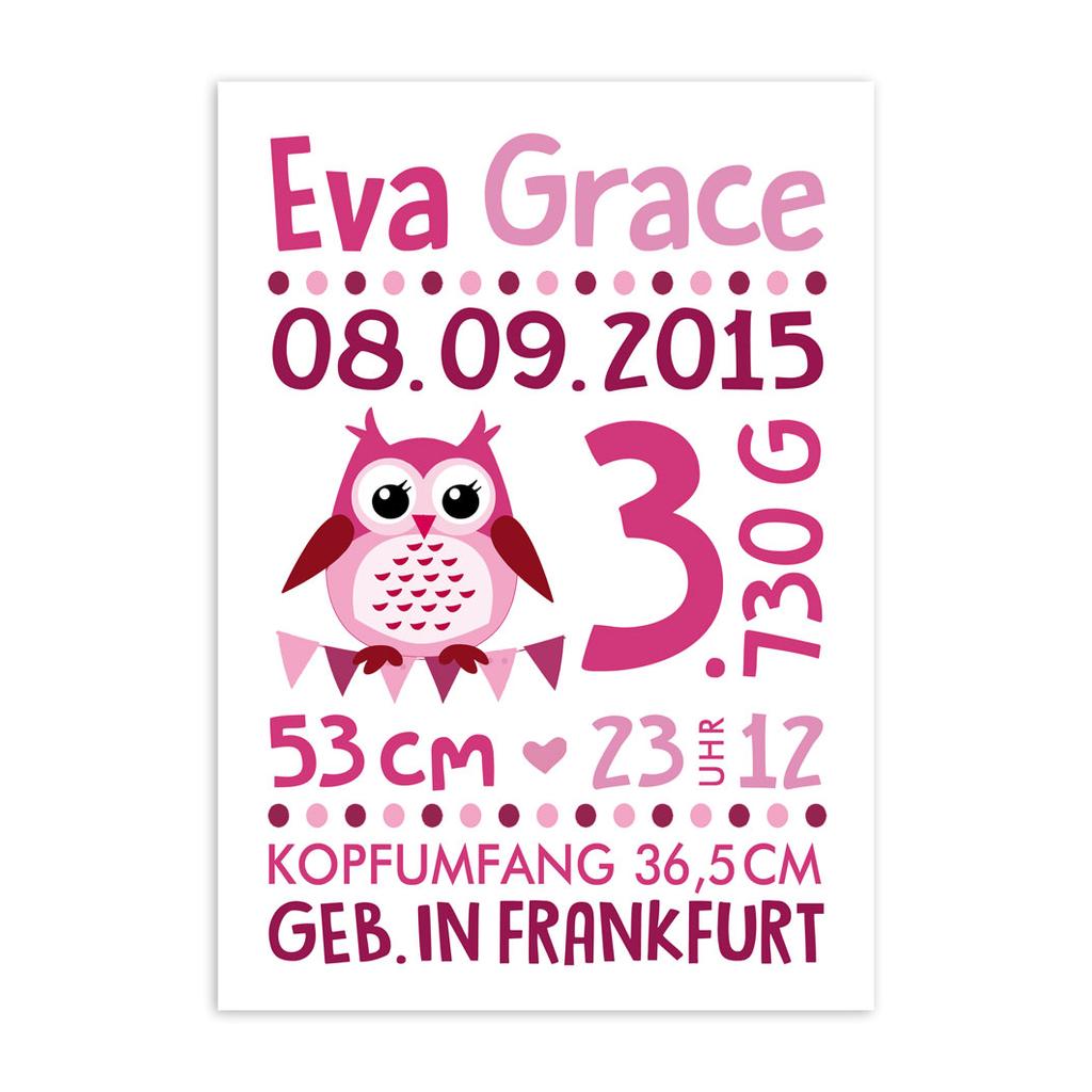 Namensbild, Geburtsanzeige Eule