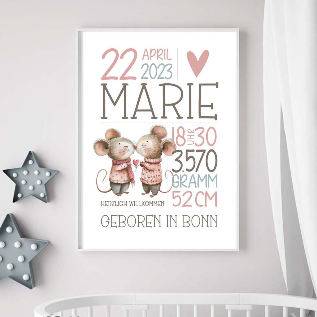 Geburtsanzeige | Kinderzimmerposter | Namensposter Mäuse