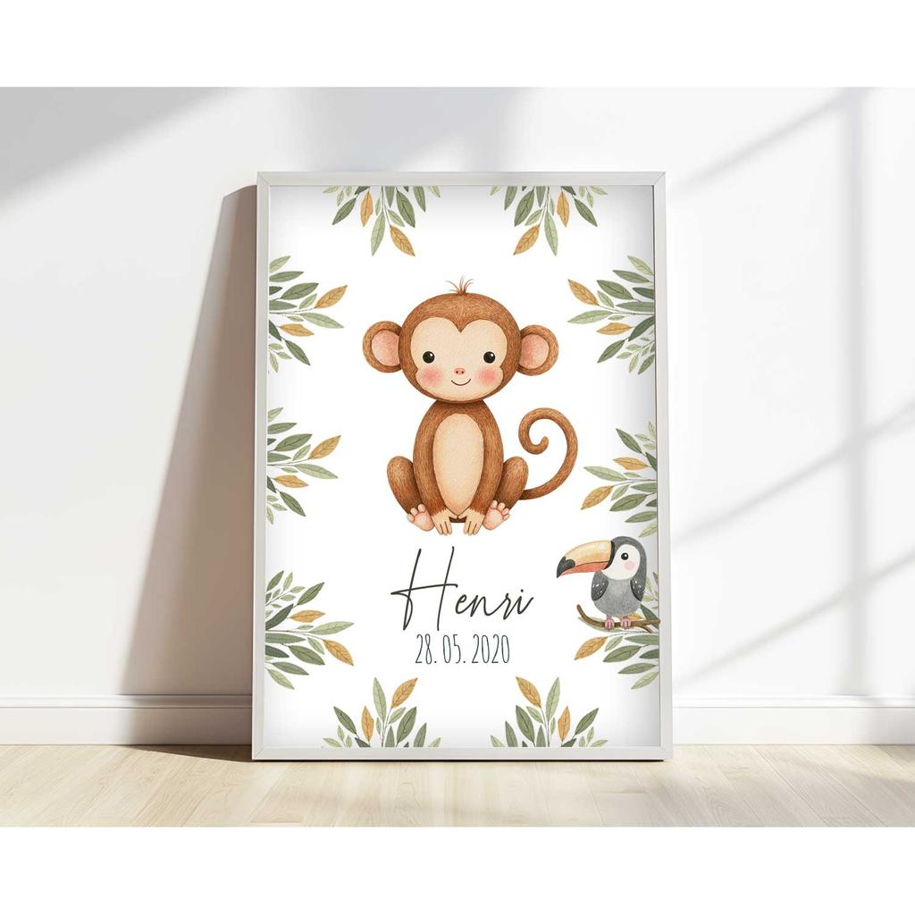 Geburtstafel - Safari Tiere, personalisiertes Poster