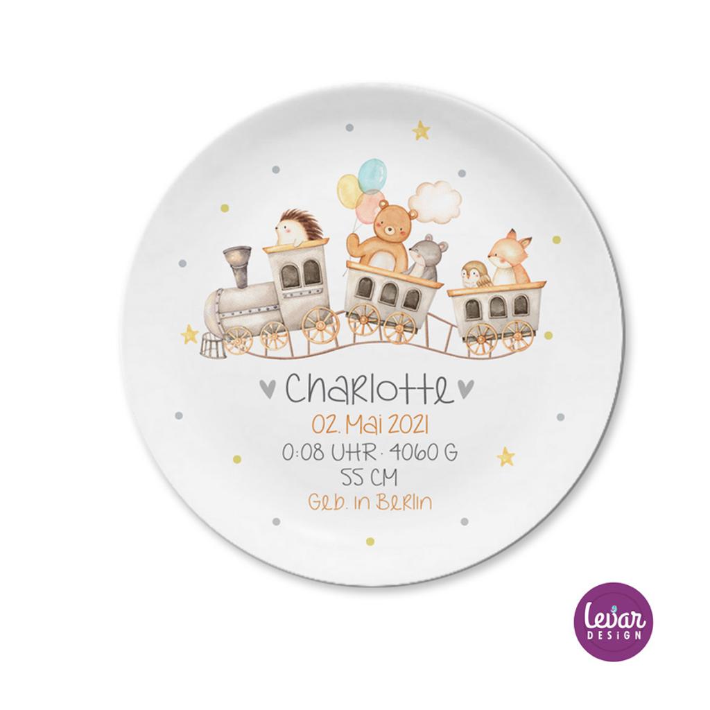Geburtsteller - Taufteller aus hochwertigem Melamin. Eine ganz individuelle und persönliche Geschenkidee zur Geburt und Taufe.