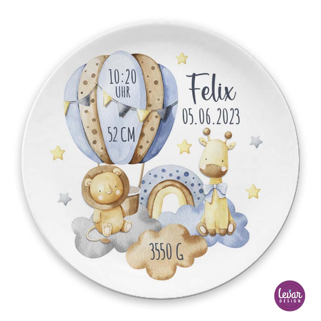 Geburtsteller - Taufteller aus hochwertigem Melamin. Eine ganz individuelle und persönliche Geschenkidee zur Geburt und Taufe.