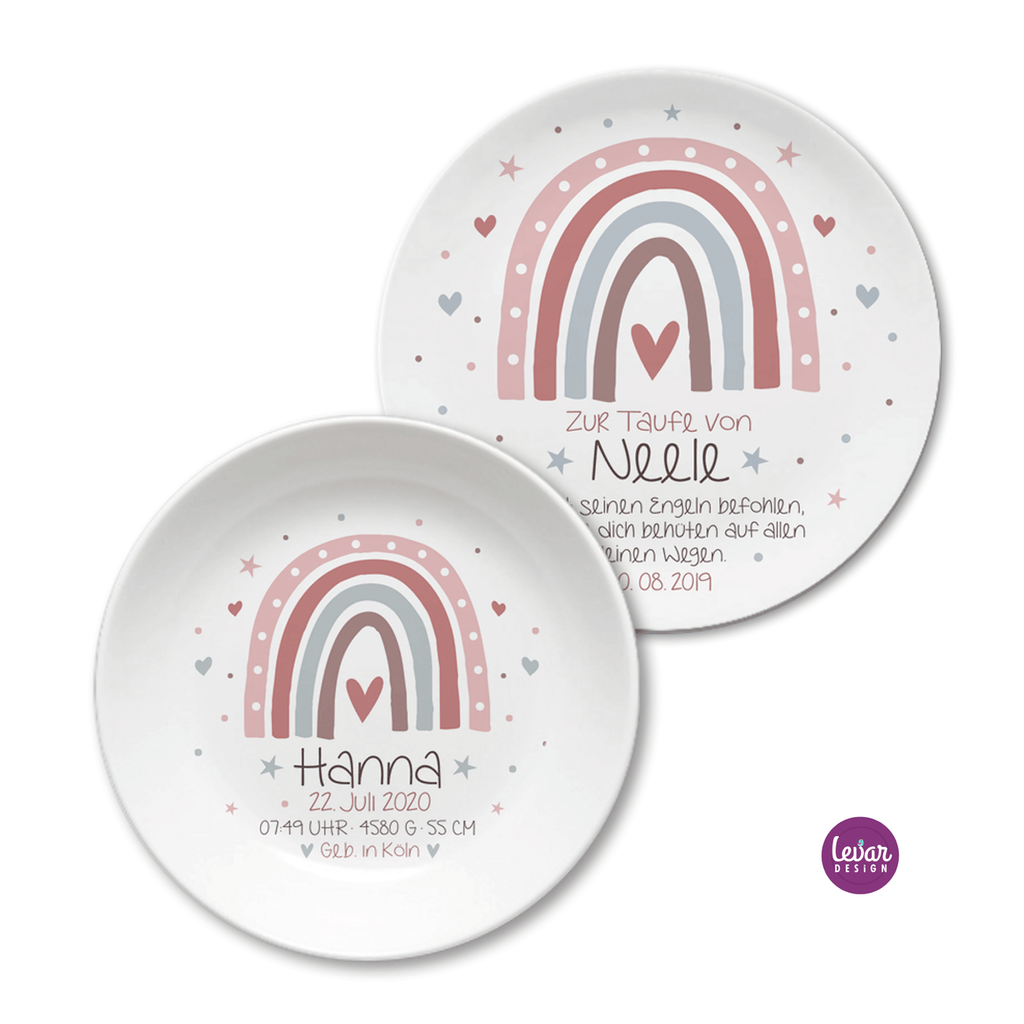 Geburtsteller - Taufteller aus hochwertigem Melamin. Eine ganz individuelle und persönliche Geschenkidee zur Geburt und Taufe.