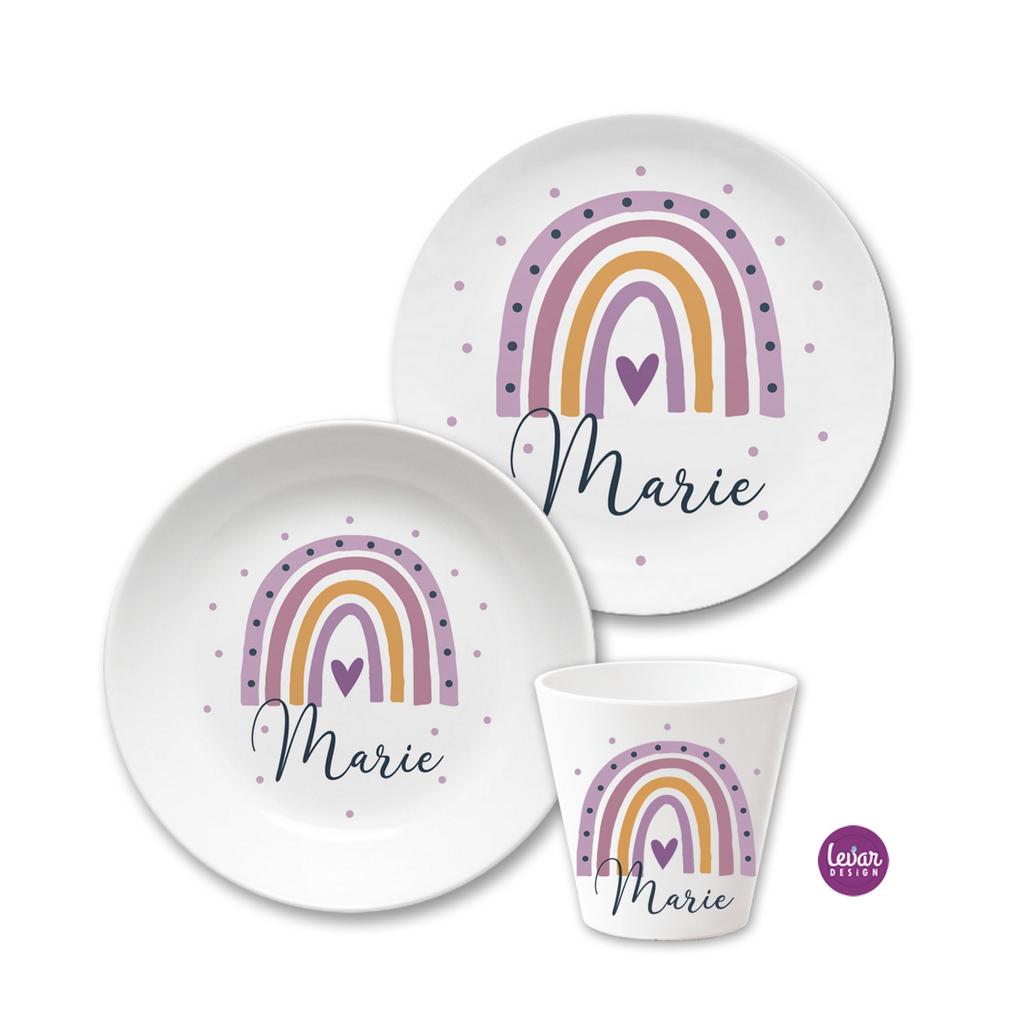 Hochwertiges Kindergeschirr mit Geburtsdaten aus Melamin, BPA frei, 3 teilig