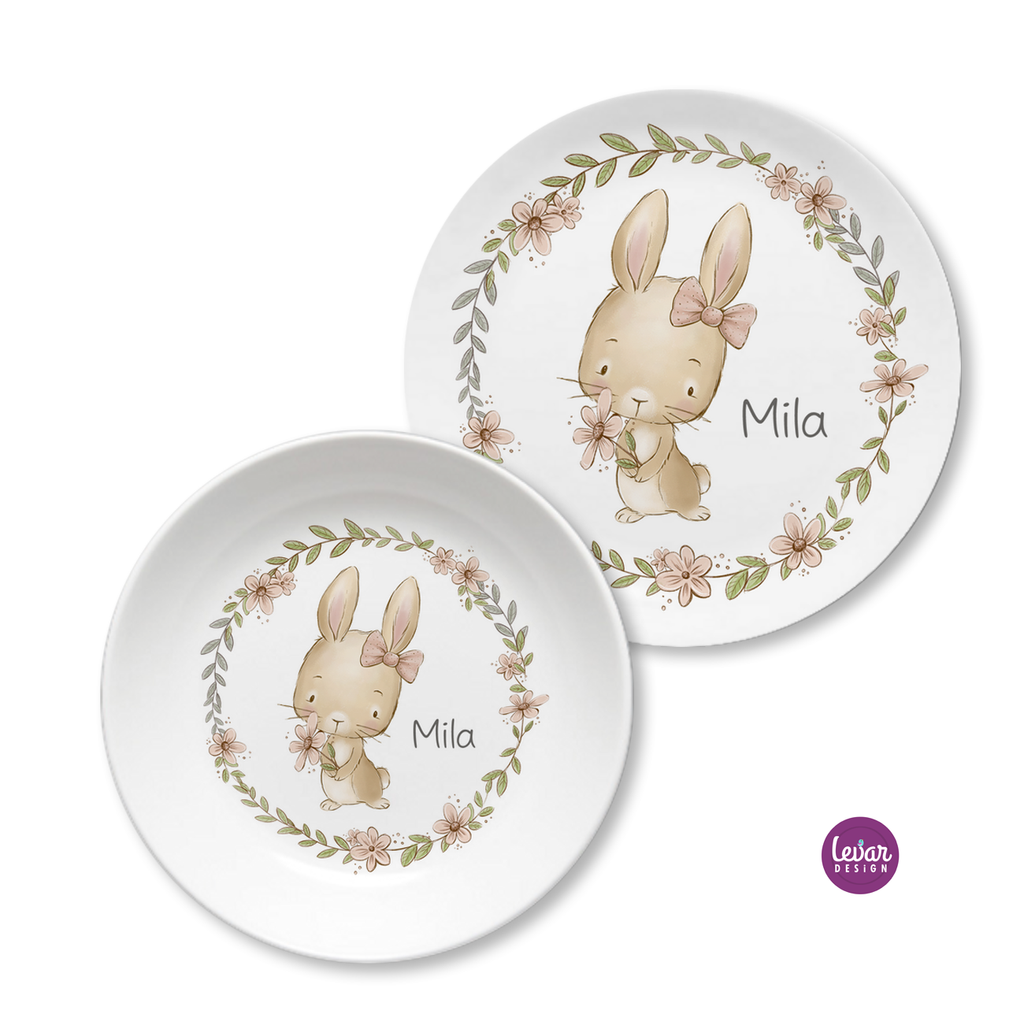Hasen - Kindergeschirr Set mit Namen personalisiert, 4 teilig