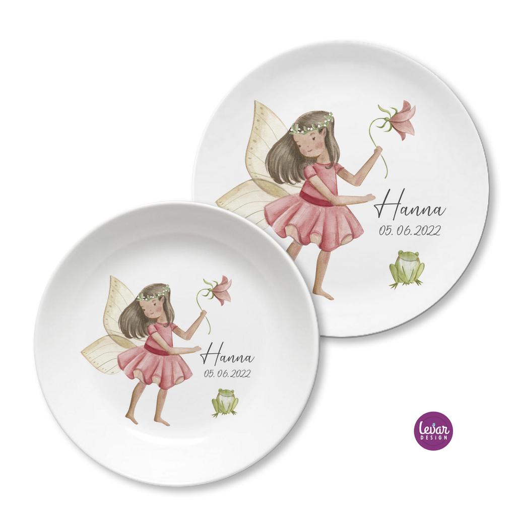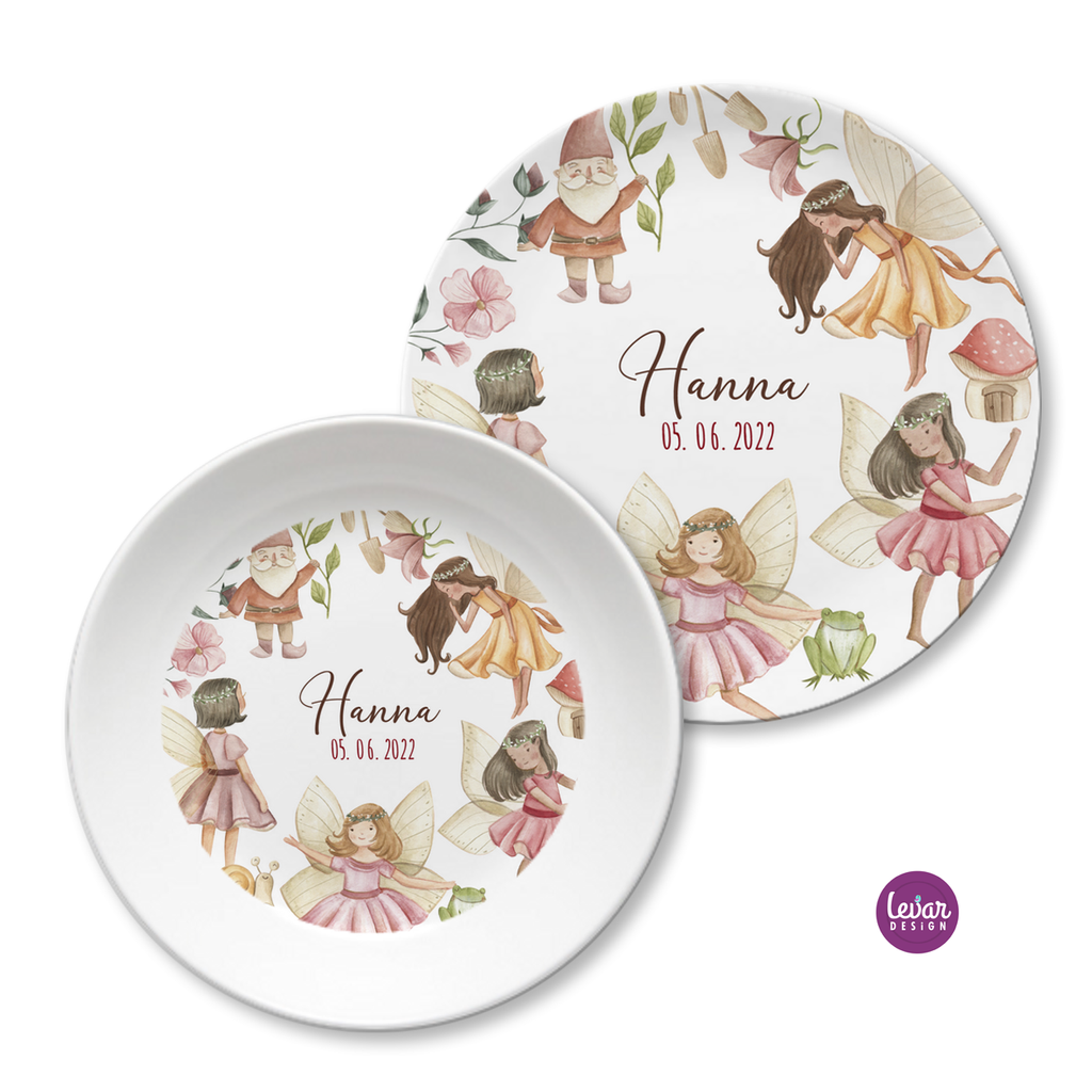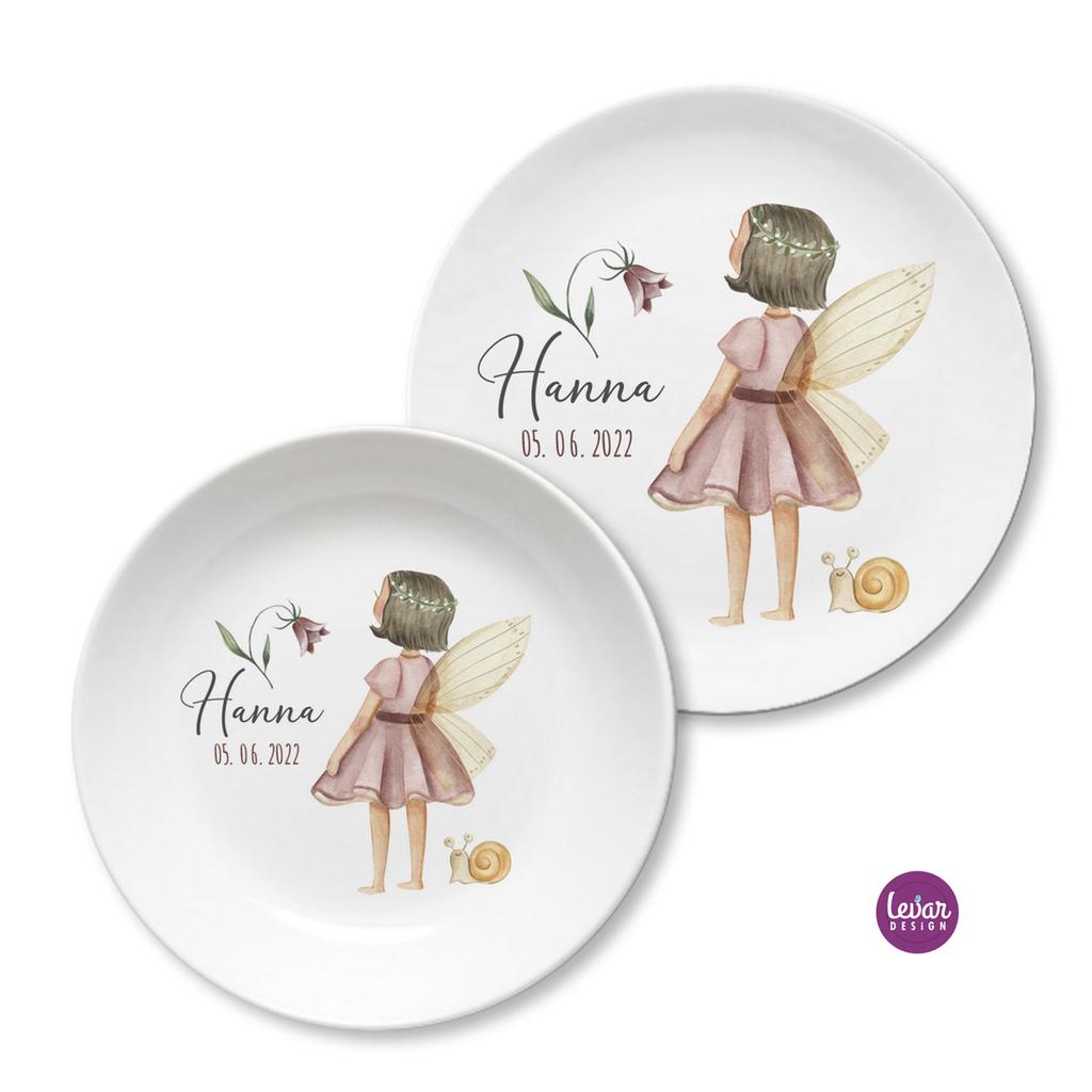 Zauberhaftes, 2 teiliges personalisierbares Kindergeschirr aus Melamin für Kinder.
