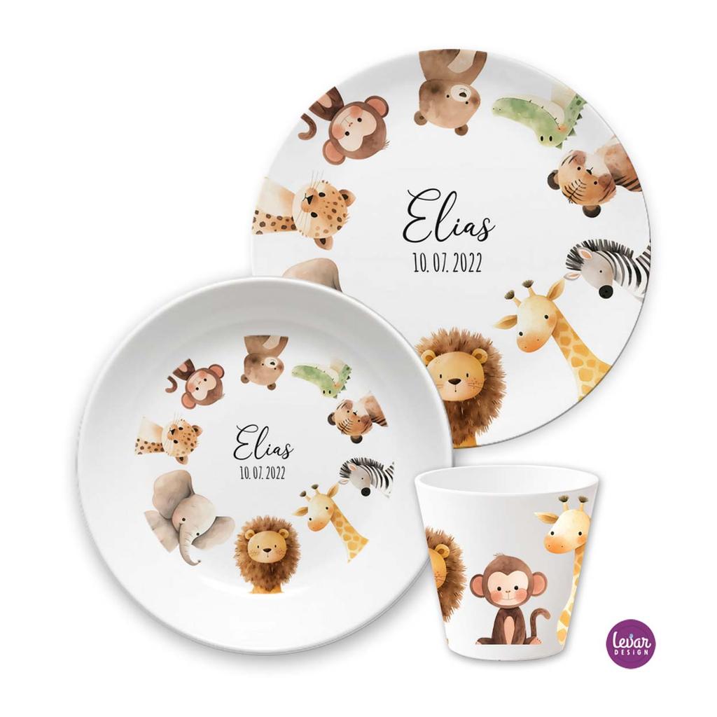 Kinder Geschirr Set mit Namen ❤ Safaritiere