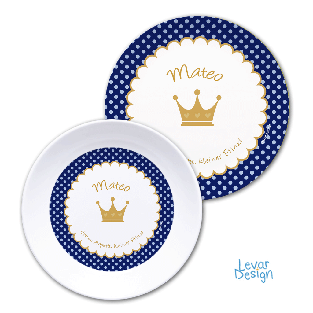 1) 190 mm tiefer Melaminteller/Schale (der Name des Kindes kann nur innerhalb des Motivs gedruckt werden).