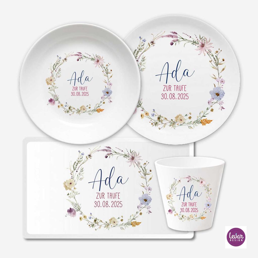 Kindergeschirr Set mit Namen personalisiert, Blumen