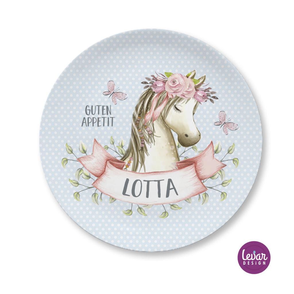 Zauberhaftes 2 teiliges personalisierbares Kindergeschirr aus Melamin, hergestellt in Deutschland