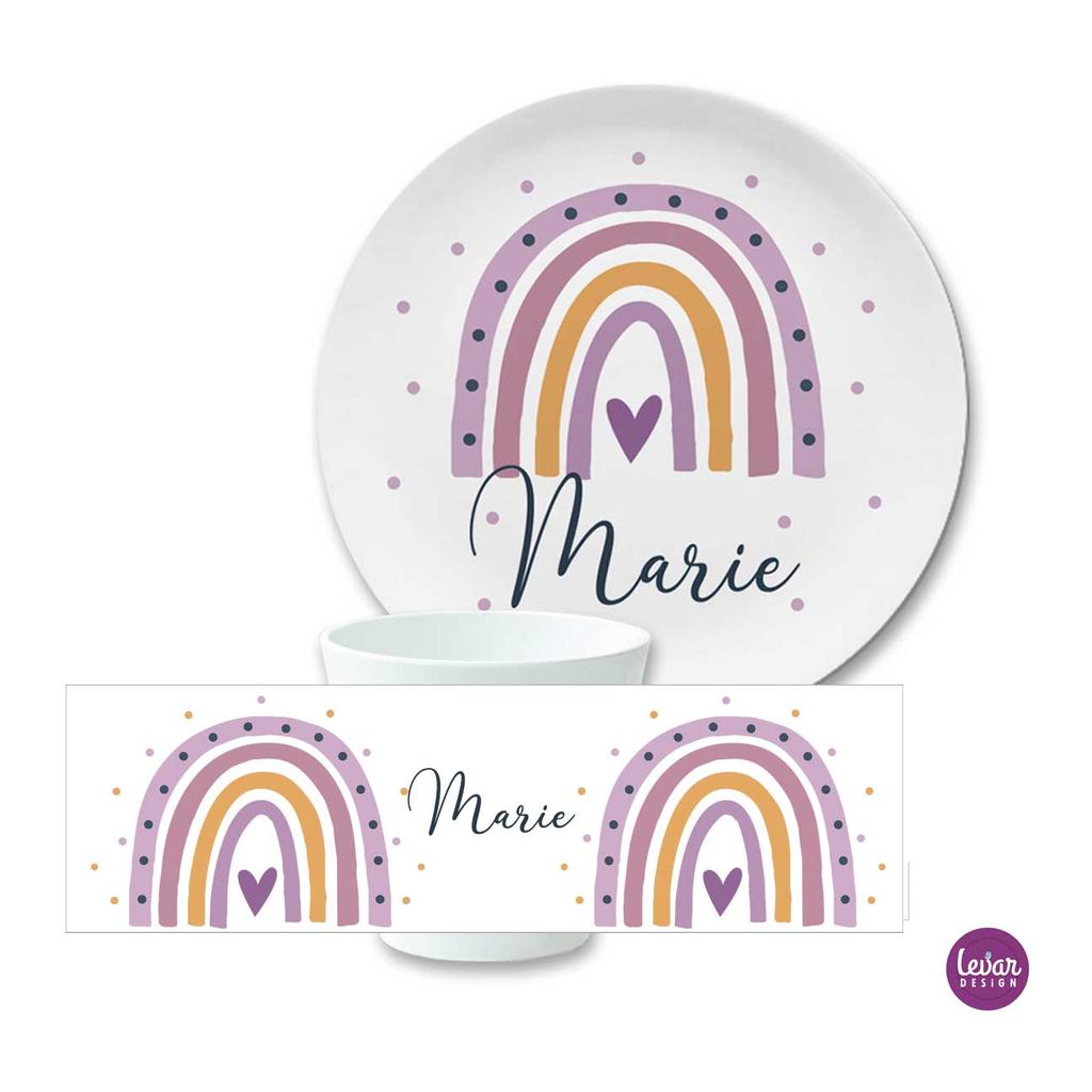Zauberhaftes 2 teiliges personalisierbares Kindergeschirr BPA frei und hergestellt in Deutschland.