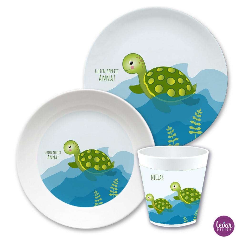 Zauberhaftes 3 teiliges personalisierbares Kindergeschirr aus Melamin, hergestellt in Deutschland