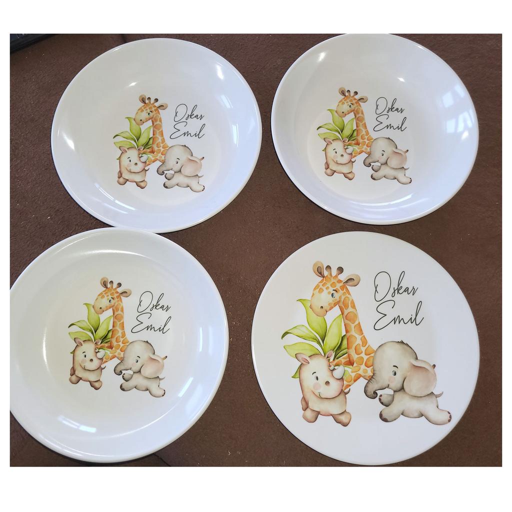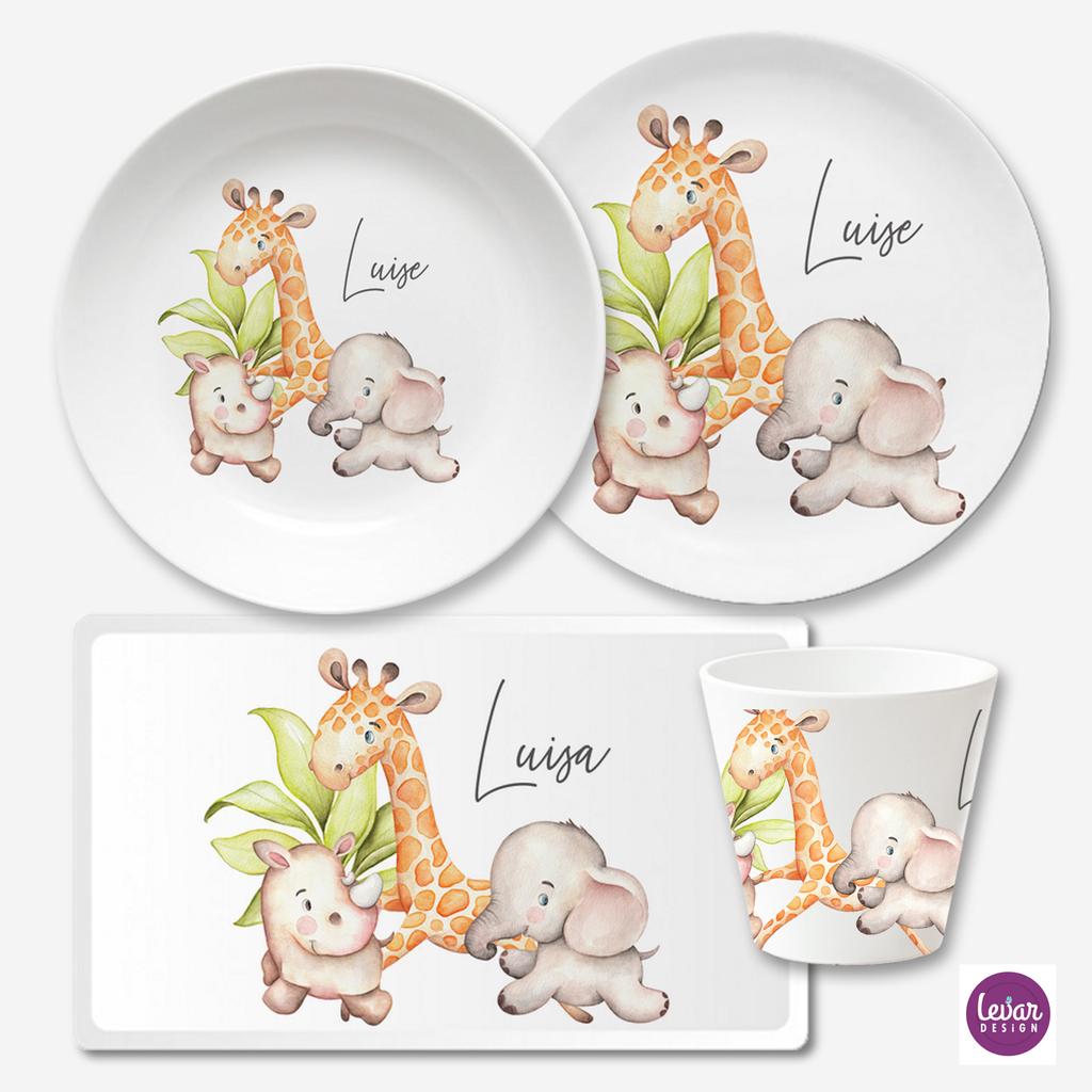 Kindergeschirrset 4 teilig aus Melamin, Dschungeltiere