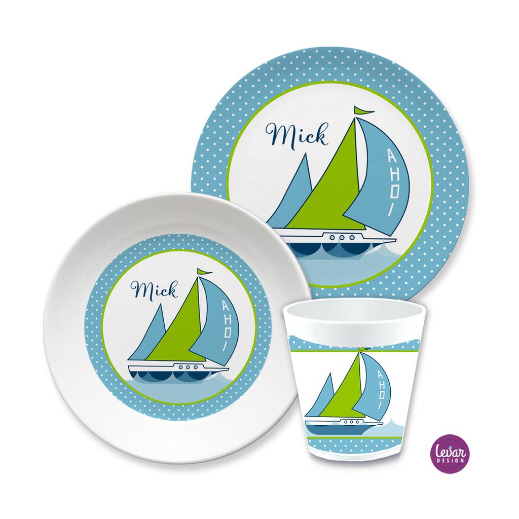 Kindergeschirrset Segelschiff Geschenk Taufe Geburt