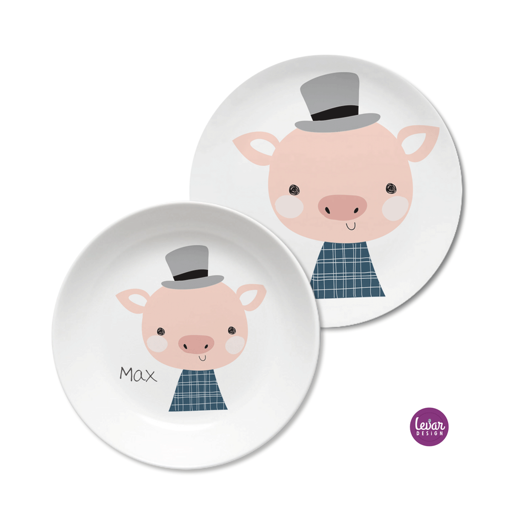 1) 190 mm tiefer Melaminteller/Schale (der Name des Kindes kann nur innerhalb des Motivs gedruckt werden).