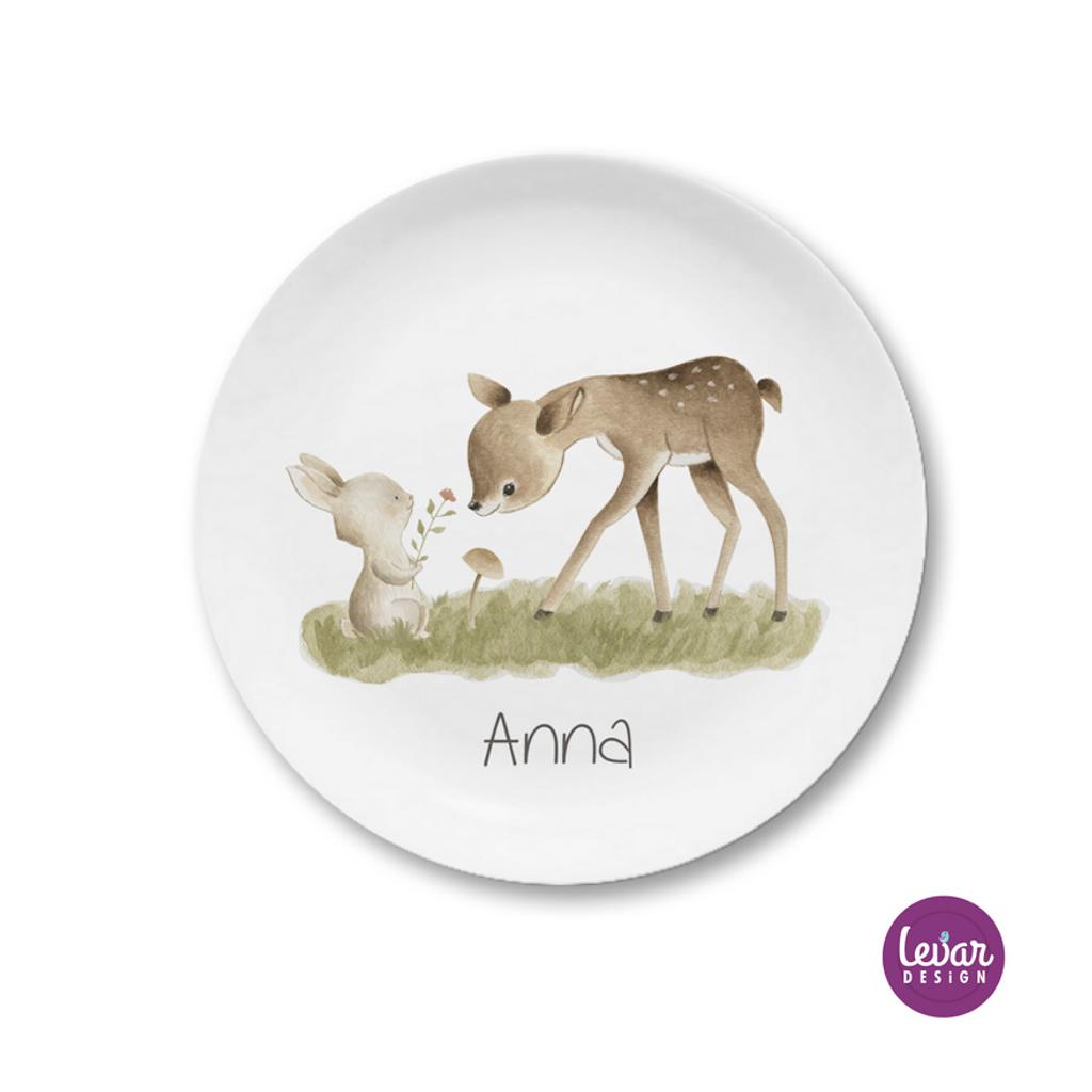 Kinderteller Waldtiere Reh, Fuchs, Hase, Igel, Eichhörnchen