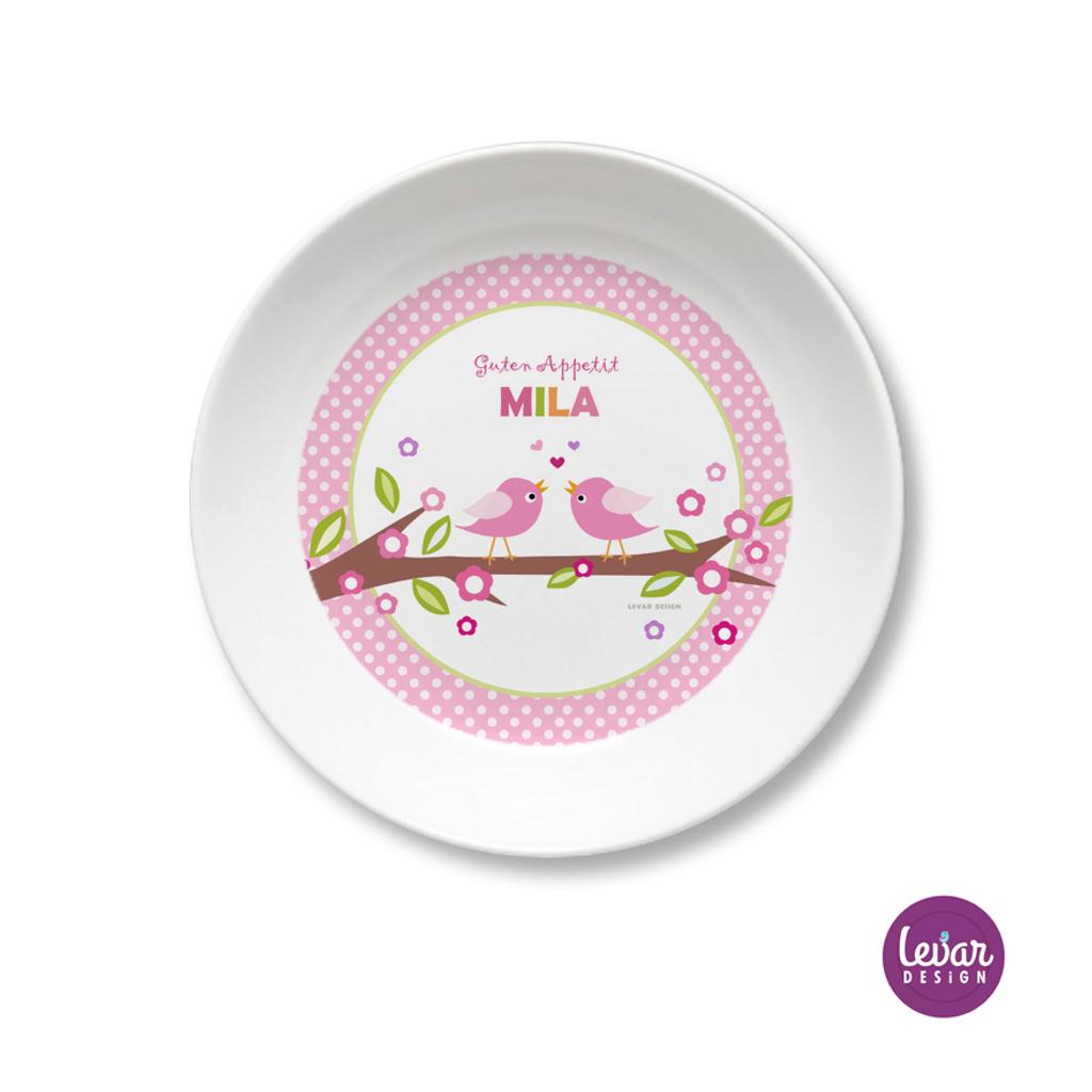 ♥ 190 mm tiefer Melaminteller/Schale (der Name des Kindes kann nur innerhalb des Motivs gedruckt werden).