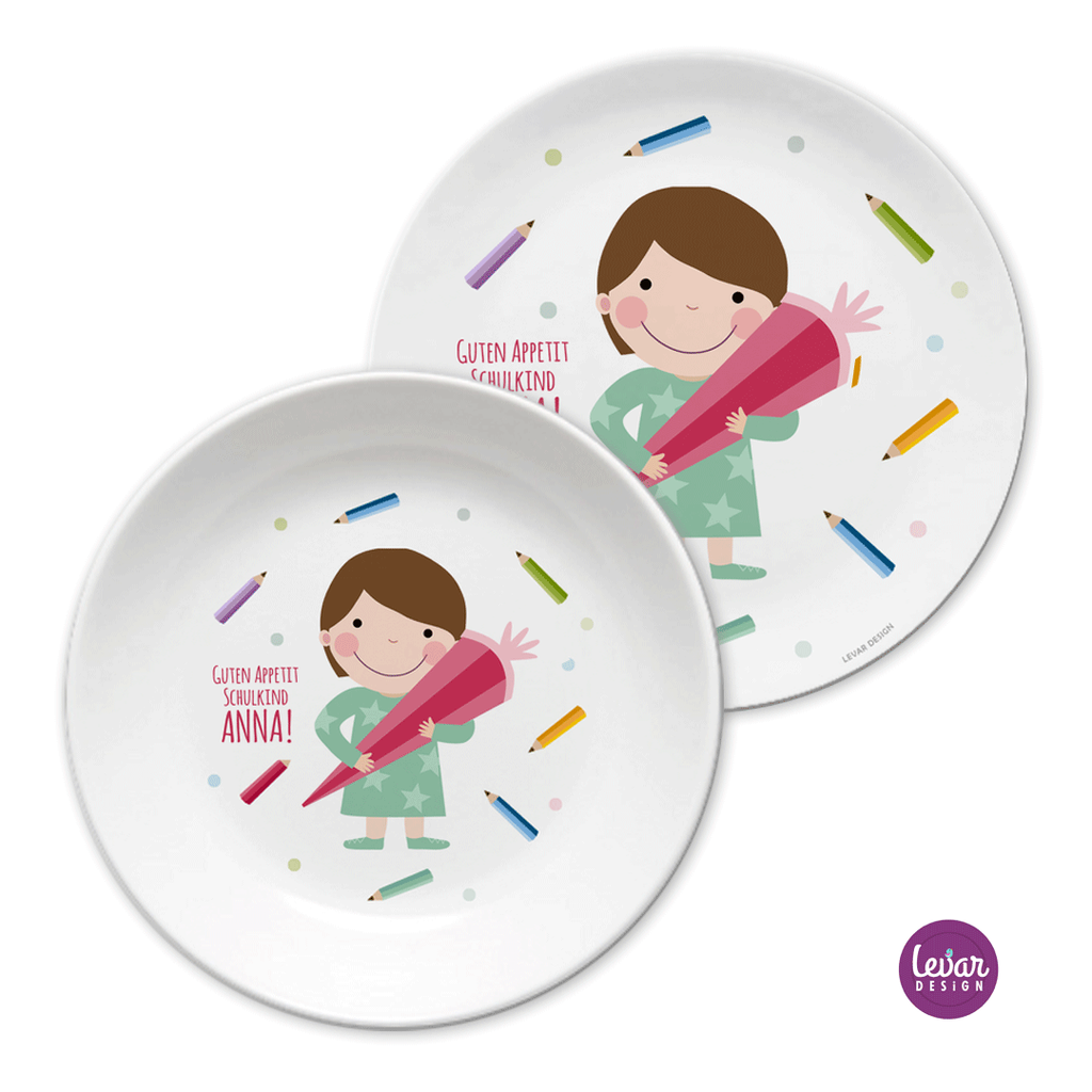 Kinderteller Einschulung Schulkind - Teller für Mädchen zum Schulanfang