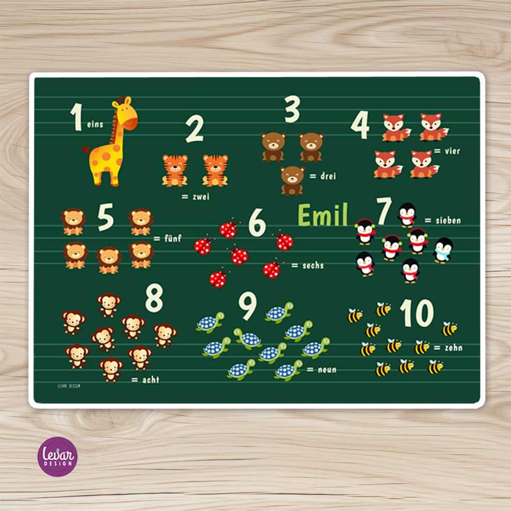 Platzset, Platzdeckchen, Tischset, Zahlen Tiere