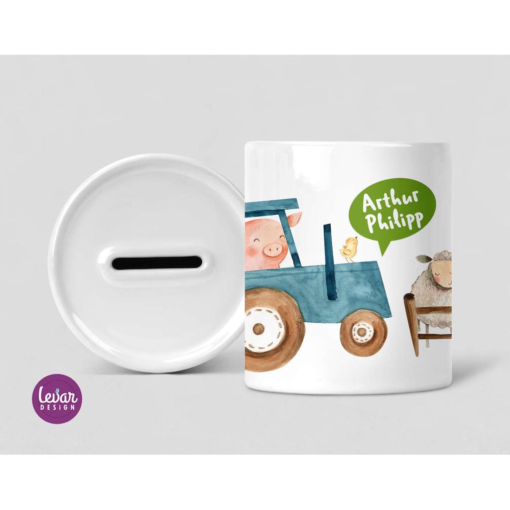 Mit dem Namen des Kindes personalisiert und einem schönen Design, wird diese Spardose zu einem ganz persönliches Geschenk zur Geburt, Taufe oder Kindergeburtstag.