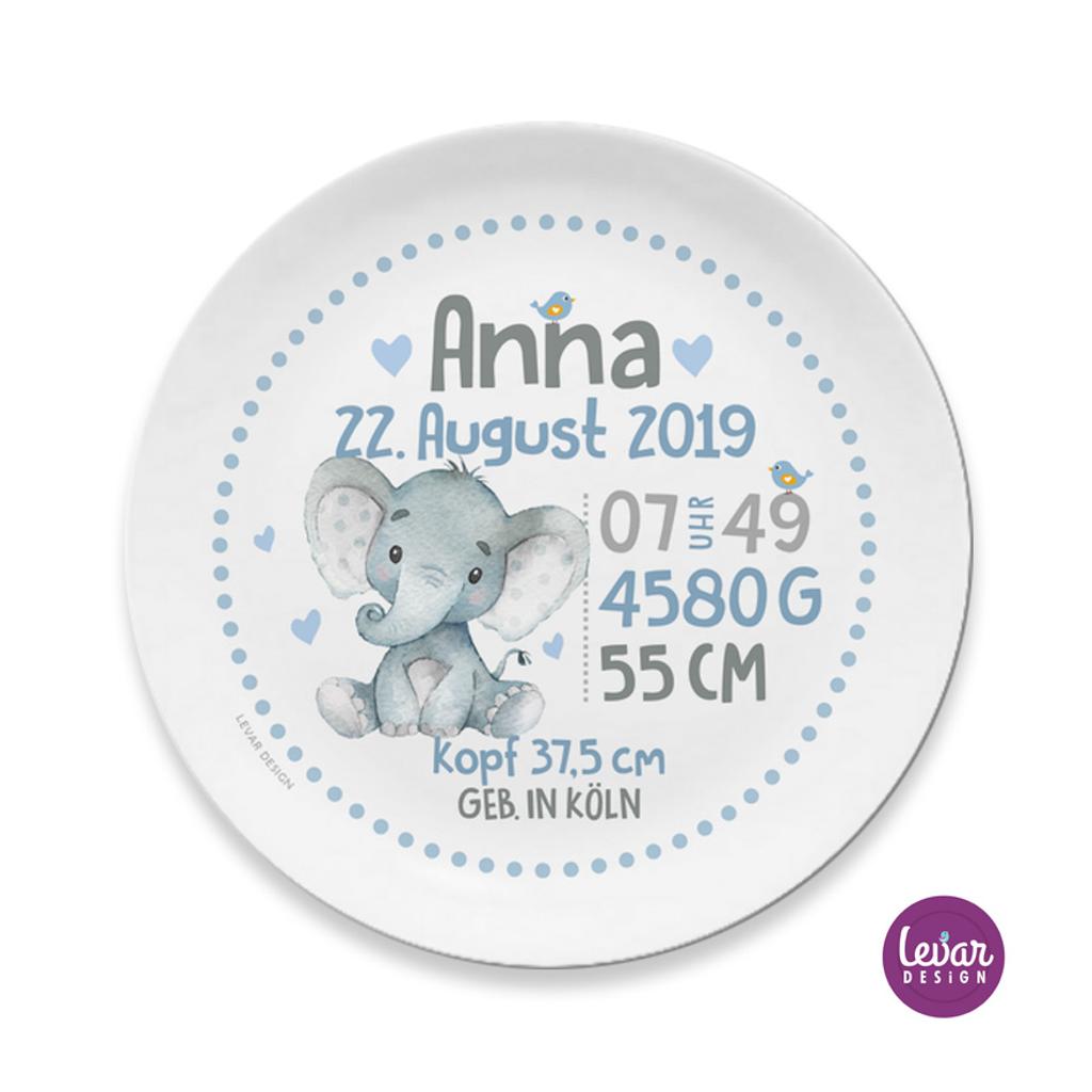 Personalisiertes Geschenk Baby zur Geburt | Geburtsteller – Taufgeschenk – Elefant | Baby Geschenke zur Geburt