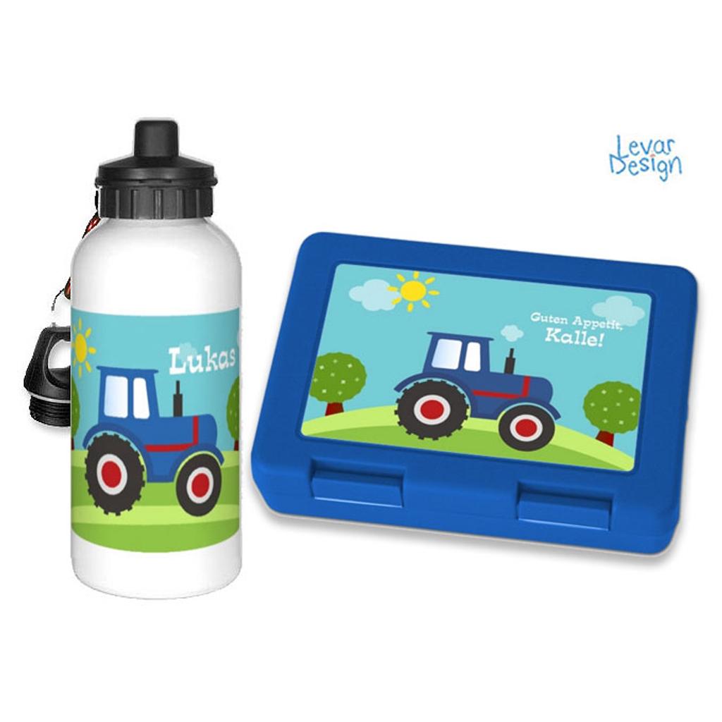 Personalisierte Brotdose und Trinkflasche als Set mit Namen für die Schule, Sport, Kindergarten und Freizeit.